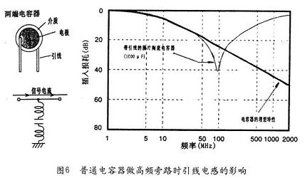 womenpingchangshiyongdetaociyuanpiandianrongqizuoweipangludianrong,keyijianggaopinganraoduanludaodi,dadaokangganraodemude。danshidianrongqideyinxiandianganjidianrongneibudeshengyudianganquexianzhiletadegaopintexingfahui。tu6是普通電容器做高頻旁路時的引線電感影響例。