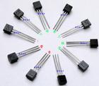 (a)從(cong)外(wai)觀(guan)上(shang)識(shi)別(bie)。常(chang)見(jian)的(de)紅(hong)外(wai)接(jie)收(shou)二(er)極(ji)管(guan)外(wai)觀(guan)顏(yan)色(se)呈(cheng)黑(hei)色(se)。識(shi)別(bie)引(yin)腳(jiao)時(shi),麵(mian)對(dui)受(shou)光(guang)窗(chuang)口(kou),從(cong)左(zuo)至(zhi)右(you),分(fen)別(bie)為(wei)正(zheng)極(ji)和(he)負(fu)極(ji)。另(ling)外(wai),在(zai)紅(hong)外(wai)接(jie)收(shou)二(er)極(ji)管(guan)的(de)管(guan)體(ti)頂(ding)端(duan)有(you)一(yi)個(ge)小(xiao)斜(xie)切(qie)平(ping)麵(mian),通(tong)常(chang)帶(dai)有(you)此(ci)斜(xie)切(qie)平(ping)麵(mian)一(yi)端(duan)的(de)引(yin)腳(jiao)為(wei)負(fu)極(ji),另(ling)一(yi)端(duan)為(wei)正(zheng)極(ji)。