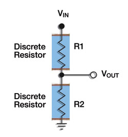 目前主要有兩種實現電阻型分壓器的方式:tongguojianglianggefenlidepianzhuangdianzulianjiedaogonggongduan,huozhetongguoshiyongfenyaqifengzhuangzaineibudedianzuwangluojinxinglianjie。nisuoxuanzedeleixingkenenghuiduifenyaqidexingnengyouhendadeyingxiang。