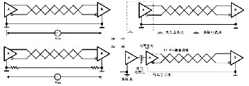 當考慮終端匹配時,有多種匹配方案可以選擇。最簡單的就是在總線兩端各接一隻阻值等於電纜特性阻抗的電阻(圖2a)。大多數雙絞線特性阻抗大約在100Ω至120Ω之(zhi)間(jian)。這(zhe)種(zhong)匹(pi)配(pei)方(fang)法(fa)簡(jian)單(dan)有(you)效(xiao),但(dan)有(you)一(yi)個(ge)缺(que)點(dian),匹(pi)配(pei)電(dian)阻(zu)要(yao)消(xiao)耗(hao)較(jiao)大(da)功(gong)率(lv),對(dui)於(yu)功(gong)耗(hao)限(xian)製(zhi)比(bi)較(jiao)嚴(yan)格(ge)的(de)係(xi)統(tong)不(bu)太(tai)適(shi)合(he)。另(ling)外(wai)一(yi)種(zhong)比(bi)較(jiao)省(sheng)電(dian)的(de)匹(pi)配(pei)方(fang)式(shi)是(shi)RC匹配(圖2b)。利用一隻電容C隔斷直流成分可以節省大部分功率。但電容C的取值是個難點,需要在功耗和匹配質量間進行折衷。除上述兩種外,還有一種采用二極管的匹配方案(圖2c)。這種方案雖未實現真正的"匹配",但它利用二極管的鉗位作用迅速削弱反射信號,達到改善信號質量的目的。節能效果顯著。