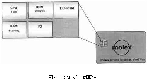SIM卡的內部硬件與普通的IC卡類似,是由CPU、ROM、RAM和EEPROM等部件組成的完整單片計算機(圖2.2.2),生產廠商已經在每一張卡 內存入了廠商代號、生產串號、卡的資源配置數據等基本參數,並為卡的正常工作提供了適當的軟硬件環境。它與手機內其它部份的物理界麵有:數據線 (DATA)或串行輸入/輸出(I/O)、複位線(RST)、時鍾(CLK)、編程電壓(VPP)、電源(VCC)和地(GND)。這些都需要通過連接器同機內其它部份相互連接。