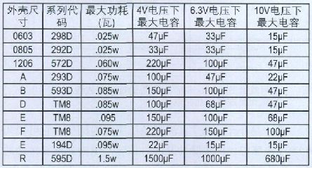 表2 鉭電容的功耗及容量範圍