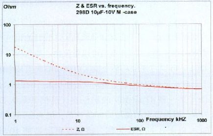 舉例來說,如果使用10μF的鉭電容用於負載線瞬態穩定,10kHz下測得的ESR的安全工作範圍為最大10Ω,最低10mΩ(見圖2)。