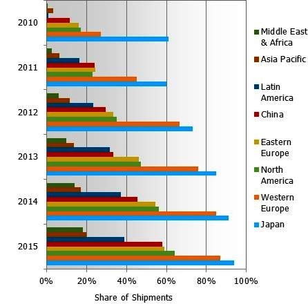 DisplaySearch 最新公布的報告(Quarterly TV Design and Features Report)指出,2011年全球將有超過27%的電視具備連網功能,該比例到2015年將上升為54%,出貨量達到15500萬台。其中拉丁美洲地區 2011年有16%的電視機具備連網功能。