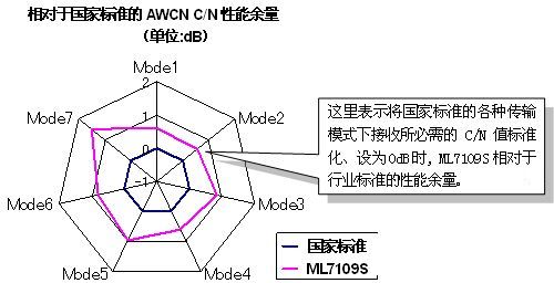 憑借高AWGN特性,有利於提高接收靈敏度,有助於改善接收信號的穩定性、擴大接收區域。雖然有關這一特性的標準要求低於規定的接收信號所需的C/N值,但我們可以確保在任何的傳輸模式下都具備餘量。