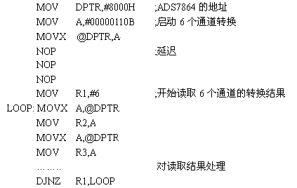 根據真值表,可以用圖4中的邏輯電路來實現這兩個使能信號。係統的最終目標就是獲取數據,然後計算得出結果。89C51控製ADS7864轉換和讀取轉換結果的代碼如下: