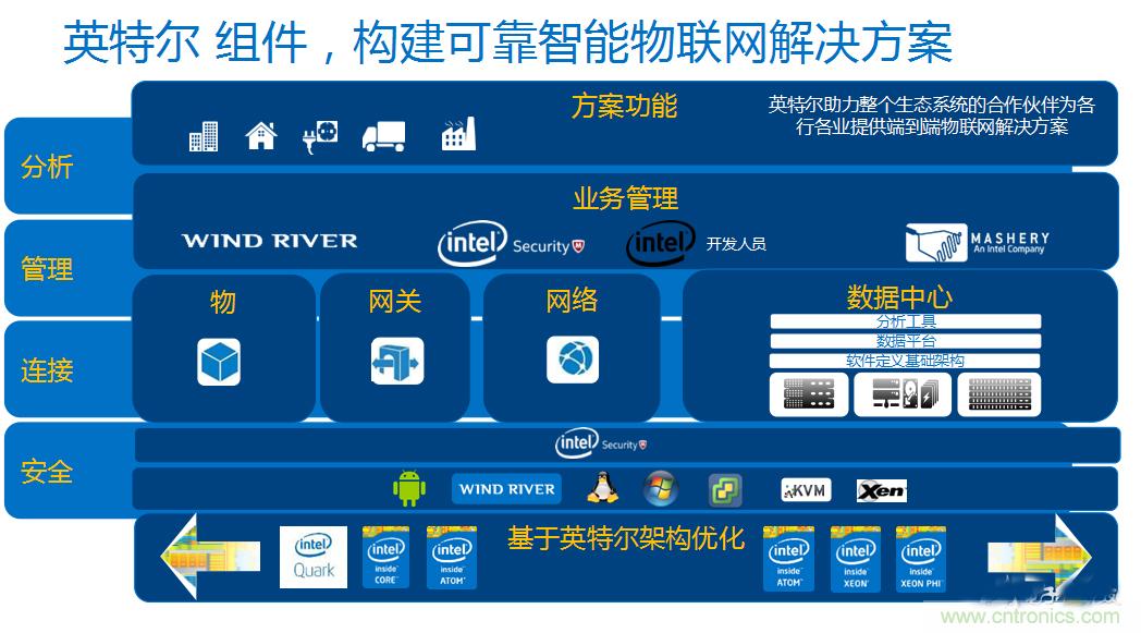 有鑒於此,英特爾將基於分析、管理、連接、安全四大關鍵點,提供端到端可靠、智能物聯網解決方案,加速物聯網解決方案發展。