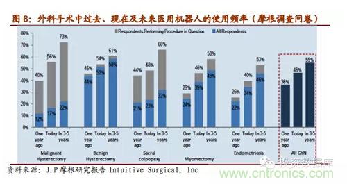 雖(sui)然(ran)當(dang)前(qian)醫(yi)用(yong)機(ji)器(qi)人(ren)普(pu)及(ji)率(lv)還(hai)很(hen)低(di),並(bing)且(qie)安(an)裝(zhuang)的(de)大(da)部(bu)分(fen)是(shi)發(fa)達(da)國(guo)家(jia),但(dan)摩(mo)根(gen)的(de)近(jin)期(qi)的(de)一(yi)個(ge)調(tiao)查(zha)研(yan)究(jiu)中(zhong)問(wen)及(ji)外(wai)科(ke)醫(yi)生(sheng)們(men)未(wei)來(lai)他(ta)們(men)會(hui)在(zai)自(zi)己(ji)在(zai)手(shou)術(shu)中(zhong)多(duo)高(gao)頻(pin)率(lv)的(de)使(shi)用(yong)醫(yi)用(yong)機(ji)器(qi)人(ren),數(shu)據(ju)表(biao)明(ming)美(mei)國(guo)的(de)外(wai)科(ke)醫(yi)生(sheng)們(men)認(ren)為(wei)未(wei)來(lai)3-5年裏醫用機器人在手術中的使用率會迅速上升到一個比較高的層次,約占50%,醫用機器人市場潛力巨大。IFR預測在未來的4年裏,醫療機器會以每年19%的速度增長,2016年全球市場規模估計會增長到119億美元。