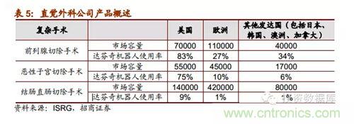 直zhi覺jiao外wai科ke公gong司si微wei創chuang機ji器qi人ren輔fu助zhu手shou術shu機ji器qi人ren的de領ling先xian者zhe,其qi機ji器qi人ren係xi統tong在zai各ge類lei外wai科ke手shou術shu中zhong的de市shi場chang份fen額e呈cheng階jie度du分fen布bu,在zai複fu雜za手shou術shu中zhong的de地di位wei領ling先xian。隨sui著zhe直zhi覺jiao外wai科ke公gong司si在zai科ke研yan技ji術shu方fang麵mian的de繼ji續xu投tou入ru和he發fa展zhan,可ke預yu期qi直zhi覺jiao外wai科ke在zai相xiang當dang一yi段duan時shi間jian內nei會hui保bao持chi領ling先xian的de競jing爭zheng優you勢shi。