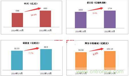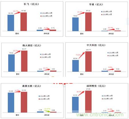 光通信設備是一個行業集中度非常高的子行業,全球五大設備商大概占到了全球80%的市場份額。華為是這一領域的翹楚,連續多年來排名第一,而且優勢在不斷擴大。2015年五大設備商營收全部實現正向增長,特別是國內的兩大設備商,增長幅度均超過10%。而在淨利潤方麵隻有阿爾卡特朗訊呈現虧損狀況。