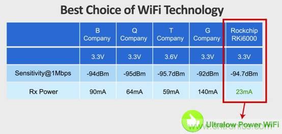 低功耗WiFi已成為IoT物聯網核心因素,瑞芯微Rockchip去年宣布推出全球最低功耗WiFi RKi6000,該技術使WiFi功耗與BT4.0 LE(Low Energy)藍牙低功耗相當。可覆蓋智能家居、主流家電、家庭控製中心,甚至醫療、交通、軍事等領域。該革命性低功耗WiFi方案引發了業界極大關注。
