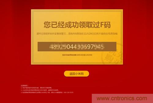 小米F碼領取成功界麵