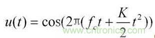 式中fe為載波頻率,K=B/T是調頻斜率,於是,信號的瞬時頻率為。