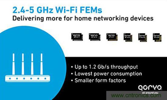 【導讀】Qorvo, Inc.今天宣布,引進新的5 GHz和2.4 GHz Wi-Fi前端模塊(FEM)係列,為更小、更節能的無線路由器、網關和其他家居聯網設備鋪平道路。七款新的FEM支持高帶寬輸出,兼顧低功耗、小尺寸和最大可靠覆蓋範圍。