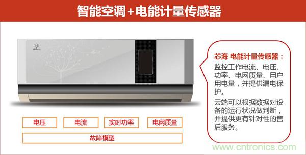 “比如智能空調”,王偉表示,“由芯海科技推出的電能計量傳感器,不僅可以監測用電量,幫助用戶實現家庭能源管理,還可以實時監測設備的電壓、電流、功率及區域電網質量,搭配我們與客戶共同研發的故障模型,從而完成對空調故障、製冷、漏水、固件損壞的預判,針對性為用戶提供售後服務。”