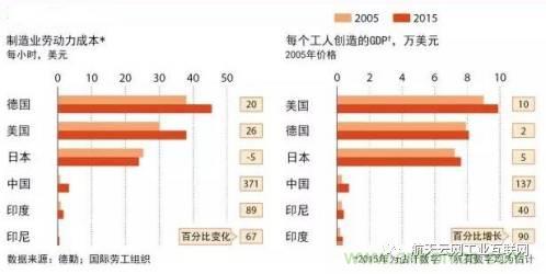 上世紀90年(nian)代(dai),無(wu)數(shu)跨(kua)國(guo)公(gong)司(si)踏(ta)上(shang)珠(zhu)三(san)角(jiao)這(zhe)片(pian)熱(re)土(tu),引(yin)入(ru)先(xian)進(jin)的(de)生(sheng)產(chan)線(xian)和(he)技(ji)術(shu)與(yu)這(zhe)裏(li)的(de)低(di)工(gong)資(zi)形(xing)成(cheng)了(le)一(yi)個(ge)世(shi)界(jie)級(ji)無(wu)可(ke)匹(pi)敵(di)的(de)組(zu)合(he),生(sheng)產(chan)的(de)各(ge)種(zhong)商(shang)品(pin)源(yuan)源(yuan)不(bu)斷(duan)出(chu)口(kou)滿(man)足(zu)西(xi)方(fang)富(fu)裕(yu)世(shi)界(jie)無(wu)止(zhi)境(jing)的(de)消(xiao)費(fei)需(xu)求(qiu)。而(er)現(xian)在(zai),西(xi)方(fang)世(shi)界(jie)經(jing)濟(ji)發(fa)展(zhan)停(ting)滯(zhi)遏(e)製(zhi)了(le)對(dui)中(zhong)國(guo)商(shang)品(pin)需(xu)求(qiu)的(de)增(zeng)長(chang),而(er)勞(lao)動(dong)力(li)短(duan)缺(que)和(he)工(gong)資(zi)上(shang)漲(zhang)將(jiang)中(zhong)國(guo)製(zhi)造(zao)業(ye)工(gong)資(zi)推(tui)高(gao)了(le)四(si)倍(bei),如(ru)下(xia)圖(tu)示(shi)所(suo)示(shi),目(mu)前(qian)中(zhong)國(guo)的(de)工(gong)資(zi)水(shui)平(ping)顯(xian)著(zhu)高(gao)於(yu)東(dong)南(nan)亞(ya)和(he)印(yin)度(du),珠(zhu)三(san)角(jiao)低(di)端(duan)製(zhi)造(zao)業(ye)快(kuai)速(su)向(xiang)東(dong)盟(meng)國(guo)家(jia)轉(zhuan)移(yi)。