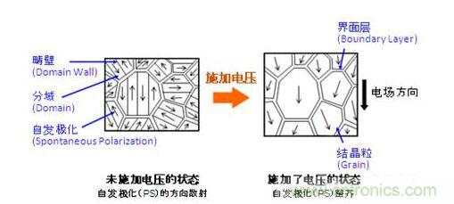 圖2:向鐵電體陶瓷施加電壓時的狀態