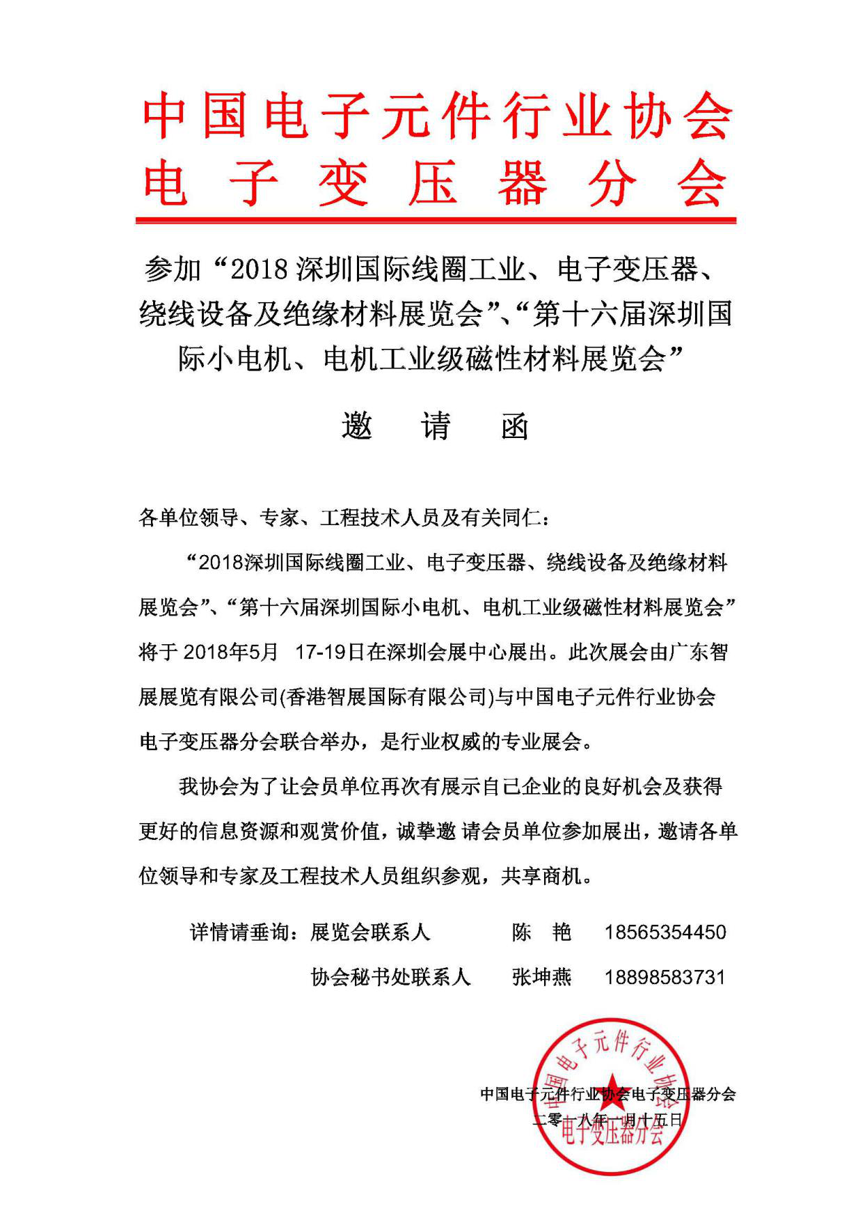 為進一步整合行業資源,提升展會質量,更好地為行業服務,中電元協電子變壓器分會將作為本屆展會的主辦單位全麵參與2018深圳國際線圈工業、繞線設備及電子變壓器展覽會。雙方將在資源整合、數據共享、展會招商、宣傳推廣、同期會議等領域開展深度合作,預將深圳國際電子變壓器展打造成全國最大最專業的行業展會。
