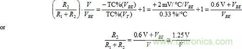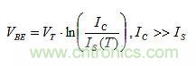 VT和IS都對TC(VBE)產生影響。IS對VBE的影響大於VT,且極性相反,導致對VBE的總影響約為–2mV/℃。因此,取消IS影響比VT的更重要。