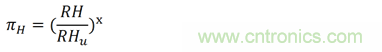 如圖4所示,在測試條件A的平均壽命為3023個小時。同樣,如圖5所示,在測試條件B的平均壽命為309個小時。所以,從相對濕度85%到相對濕度95%,加速因子αf_A-B通過計算為3023/309=9.78。相對濕度的經驗影響因子x通過下式計算: