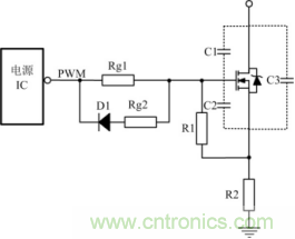 開關管開通瞬時,驅動電路應能提供足夠大的充電電流使MOSFET柵源極間電壓迅速上升到所需值,保證開關管能快速開通且不存在上升沿的高頻振蕩。