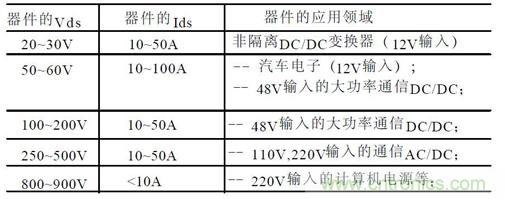 (A):根據電源規格,合理選擇MOSFET 器件(見下表):