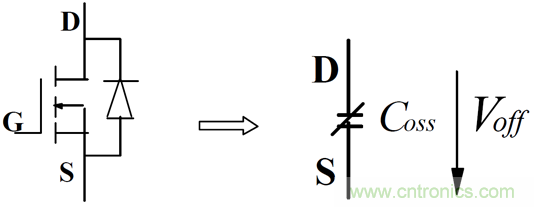 功率 MOSFET 正向截止時可用一電容等效,其容量與所加的正向電壓、環境溫度等有關,大小可從製造商的手冊中獲得。