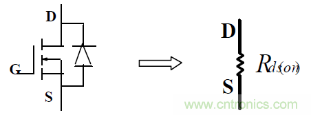 功率 MOSFET 正向導通時可用一電阻等效,該電阻與溫度有關,溫度升高,該電阻變大;它還與門極驅動電壓的大小有關,驅動電壓升高,該電阻變小。詳細的關係曲線可從製造商的手冊中獲得。