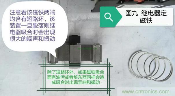 接jie下xia來lai我wo們men再zai來lai看kan一yi下xia繼ji電dian器qi內nei部bu吸xi合he部bu分fen的de構gou造zao,在zai這zhe部bu分fen當dang中zhong以yi固gu定ding吸xi合he磁ci鐵tie上shang短duan路lu環huan所suo引yin發fa的de故gu障zhang最zui為wei常chang見jian,詳xiang情qing請qing看kan圖tu七qi至zhi圖tu九jiu的de展zhan示shi: