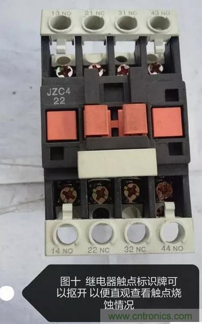 最後圖十所展示的是直接查看繼電器各觸點燒蝕情況的方法,該方法相較萬用表測量法,更為直觀: