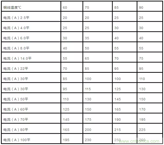 2、銅芯線電源線電流計算法