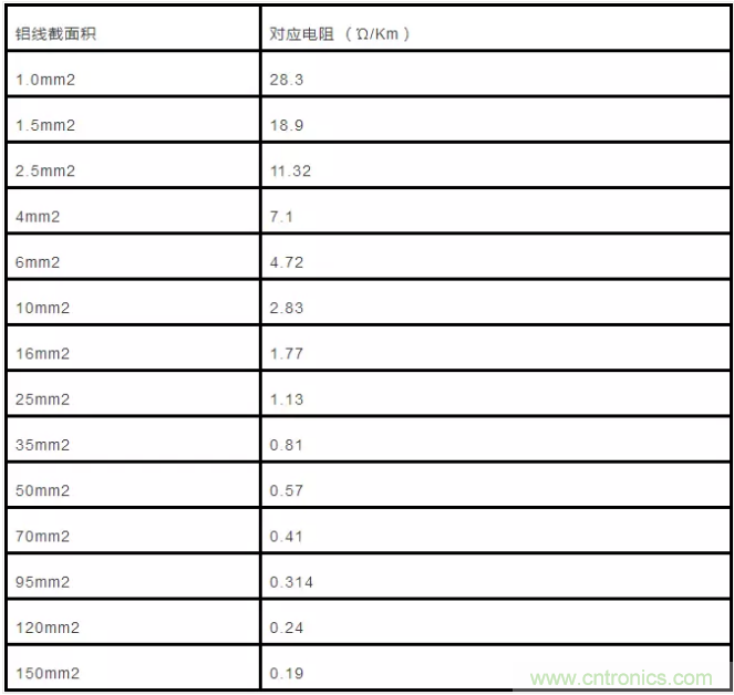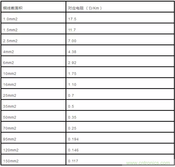 20℃時:17.5÷截麵積(平方毫米)=每千米電阻值(Ω)