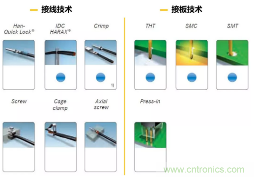 連接器的連接方式種類很多,基本上可以分為接線(與線纜連接)和接板(與PCB 連接)兩個大類。而 Crimp 與 Press-in 就是這兩大類裏麵最常用的連接方式。有意思的是,這兩種連接方式的中文都可以用“壓接”這個詞來表述。