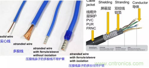 這種方式適合使用線徑為 0.08mm² 至 240mm² 的 2 類、5 類和 6 類線。有證據表明實心線也可以被壓接,但需要對壓接質量進行檢測確認。下圖是有關各類不同線纜、經過壓接後的多股線以及多股線內部結構的圖示。