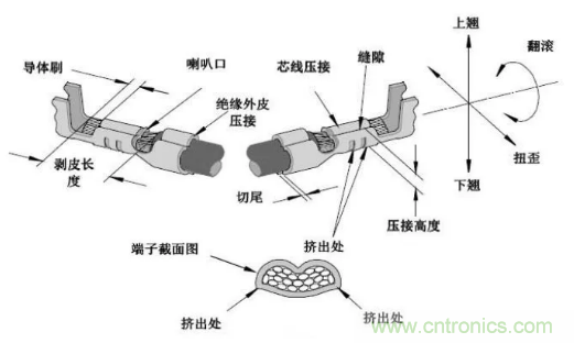 Crimp 是冷壓技術,起源最早可追溯到 1940 年前後。其原理是借助壓線鉗或壓線工具,完成金屬導線和插針的壓接。這種壓接氣密性好、抗腐蝕、線材變形必須超過它的屈服點,因此能夠實現可靠的數據、信號和動力傳輸。在壓接過程中,線的氧化層或硫化層都可以被去除,以壓針和線的殘餘彈性保證持久的電氣連接。