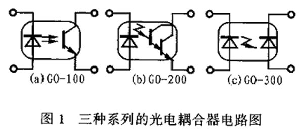 光(guang)電(dian)耦(ou)合(he)器(qi)的(de)主(zhu)要(yao)結(jie)構(gou)是(shi)把(ba)發(fa)光(guang)器(qi)件(jian)和(he)光(guang)接(jie)收(shou)器(qi)件(jian)組(zu)裝(zhuang)在(zai)一(yi)個(ge)密(mi)閉(bi)的(de)管(guan)殼(ke)內(nei),然(ran)後(hou)利(li)用(yong)發(fa)光(guang)器(qi)件(jian)的(de)管(guan)腳(jiao)作(zuo)輸(shu)入(ru)端(duan),而(er)把(ba)光(guang)接(jie)收(shou)器(qi)的(de)管(guan)腳(jiao)作(zuo)為(wei)輸(shu)出(chu)端(duan)。當(dang)在(zai)輸(shu)入(ru)端(duan)加(jia)電(dian)信(xin)號(hao)時(shi),發(fa)光(guang)器(qi)件(jian)發(fa)光(guang)。這(zhe)樣(yang),光(guang)接(jie)收(shou)器(qi)件(jian)由(you)於(yu)光(guang)敏(min)效(xiao)應(ying)而(er)在(zai)光(guang)照(zhao)後(hou)產(chan)生(sheng)光(guang)電(dian)流(liu)並(bing)由(you)輸(shu)出(chu)端(duan)輸(shu)出(chu)。從(cong)而(er)實(shi)現(xian)了(le)以(yi)“光”為(wei)媒(mei)介(jie)的(de)電(dian)信(xin)號(hao)傳(chuan)輸(shu),而(er)器(qi)件(jian)的(de)輸(shu)入(ru)和(he)輸(shu)出(chu)兩(liang)端(duan)在(zai)電(dian)氣(qi)上(shang)是(shi)絕(jue)緣(yuan)的(de)。這(zhe)樣(yang)就(jiu)構(gou)成(cheng)了(le)一(yi)種(zhong)中(zhong)間(jian)通(tong)過(guo)光(guang)傳(chuan)輸(shu)信(xin)號(hao)的(de)新(xin)型(xing)半(ban)導(dao)體(ti)電(dian)子(zi)器(qi)件(jian)。光(guang)電(dian)耦(ou)合(he)器(qi)的(de)封(feng)裝(zhuang)形(xing)式(shi)一(yi)般(ban)有(you)管(guan)形(xing)、雙列直插式和光導纖維連接三種。圖1是三種係列的光電耦合器電路圖。