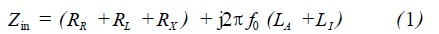 式中,RR為輻射電阻;RL為環型導體損耗電阻;RX為額外歐姆損耗電阻;LA為環型天線電感;L1為環型導體電感。