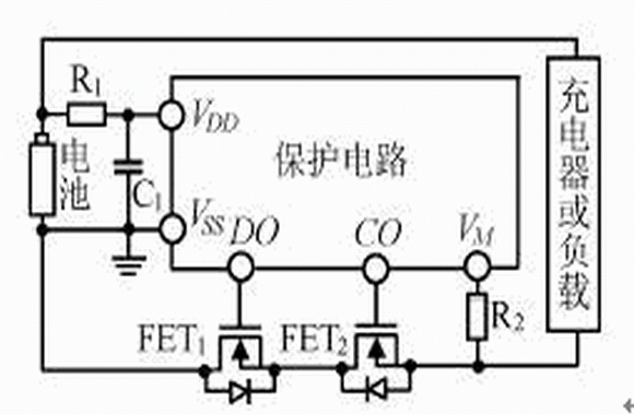 鋰離子電池保護電路為了實現其基本功能,首先需要檢測異常現象。過充電和過放電檢測是將電池電壓進行分壓(采樣)後與基準電壓比較實現的;而對於過流檢測,保護芯片首先將充放電過程中的電流轉化為在功率管FET1、FET2上的電壓,然後通過VM與基準電壓比較完成,放電過流檢測的是正電壓,充電過流檢測的是負電壓。