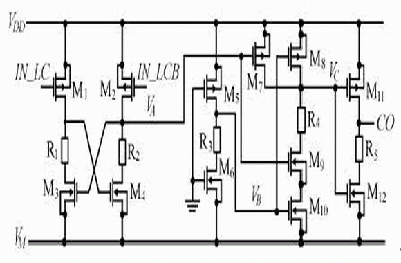在正常的放電過程中,VM端電位大於零而接近於零,可近似為VSS。此時,該電路的輸入信號IN_LCB=‘0’,IN_LC=‘1’,顯然,CO輸出為高電平(VDD)。