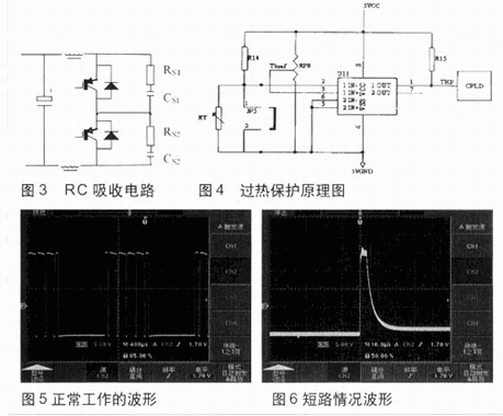本文采用普通散熱器與強迫風冷相結合的措施,並在控製電路上加過熱檢測保護電路,應付IGBT與散熱器接觸不良或者非正常情況,在IGBT散熱片上安裝熱敏電阻,然後通過邏輯判斷電路給出信號,供控製電路處理(見圖4)。