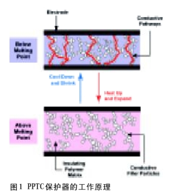 保護繼電器的一個常用元件是高分子聚合物正溫度係數(PPTC)自複過流保護器(見圖1)。 它是用碳黑這種導電性填料做成的。在這個元件中碳黑構成網狀導電通路。在正常的情況下,PPTC保護器呈現低電阻,但是,在PPTC保(bao)護(hu)器(qi)中(zhong)流(liu)過(guo)的(de)電(dian)流(liu)過(guo)大(da)時(shi),它(ta)的(de)溫(wen)度(du)升(sheng)高(gao),結(jie)晶(jing)狀(zhuang)聚(ju)合(he)物(wu)變(bian)成(cheng)非(fei)結(jie)晶(jing)狀(zhuang)態(tai)。這(zhe)個(ge)轉(zhuan)變(bian)引(yin)起(qi)聚(ju)合(he)物(wu)膨(peng)脹(zhang),使(shi)得(de)導(dao)電(dian)性(xing)聚(ju)合(he)物(wu)內(nei)的(de)網(wang)狀(zhuang)導(dao)電(dian)通(tong)路(lu)斷(duan)開(kai)。這(zhe)個(ge)變(bian)化(hua)引(yin)起(qi)它(ta)的(de)電(dian)阻(zu)急(ji)劇(ju)上(shang)升(sheng)。由(you)於(yu)電(dian)阻(zu)增(zeng)大(da),於(yu)是(shi)保(bao)護(hu)器(qi)中(zhong)流(liu)過(guo)的(de)電(dian)流(liu)便(bian)下(xia)降(jiang)到(dao)很(hen)小(xiao)。PPTCbaohuqibaochizhegezhuangtai,zhidaoguzhangbeipaichu。yidanbaguzhangpaichule,baohuqidewenduxiajiang,tanheixingchengdedaodiantongluhuifu,tayouhuidaodidianzuzhuangtai。keyibushiyongPPTC 保護器而用傳統的熔斷器來保護繼電器。不過,在使用熔斷器的情況下,每當發生故障,就需要更換熔斷器。PPTC保護器的主要優點在於它具有自複功能,從而可以減少昂貴的服務費用和保修費用。