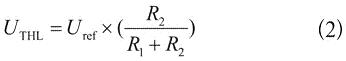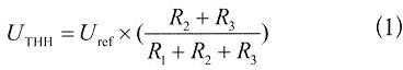 式(1)和式(2)是理論上的公式,實際上,為了將上述的滯回原理應用於實際的電池係統,還要考慮一個參考電壓的問題。參考電壓Uref是不能變的,否則上下電壓門限就會發生變化。而且參考電壓是由電池電壓供電產生的,它必須比電池電壓低的多,而且功耗極小。