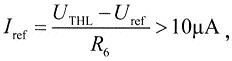 但由於分流穩壓器還要分出一部分電流給其它電阻網絡用,留出2倍的裕量,所以實際的應保證Iref>20μA,這樣可求出R6=175kΩ,取R6=125kΩ。