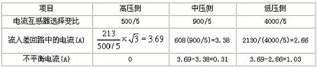 主變差動保護部分整定值如下(計算過程略):