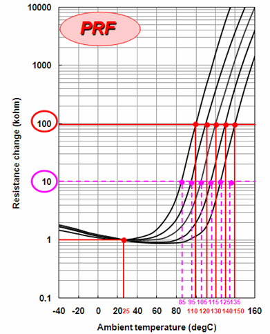 ・擁有豐富的以10℃為單位的係列產品,能夠滿足客戶的各種溫度測量要求【80℃~150℃(電阻值為100kΩ時);65℃~135℃(電阻值為10kΩ時)】