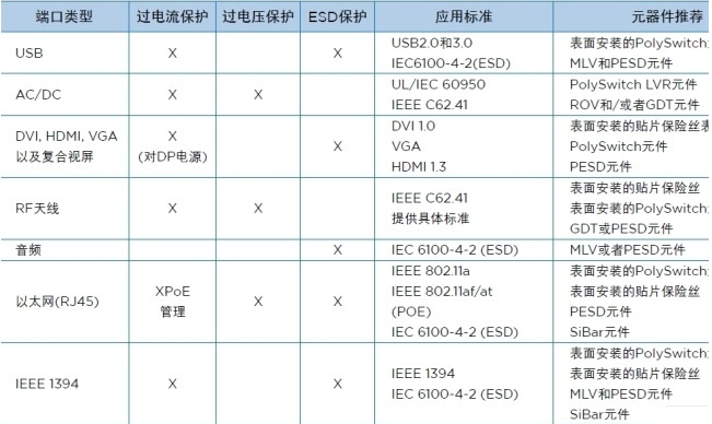 對LCD電視的界麵的故障保護有明確地要求,包括有涉及各種故障保護需求的具體的標準。圖片7總結了這些標準以及對每一種端口類型所建議的電路保護設備。