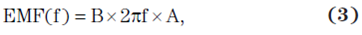 EMF 為以伏特為單位的電勢,f 為磁場頻率,而 A 為以平方米 (m2) 為單位的環路麵積。