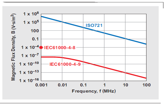 超出電容隔離器差動電路噪聲預算的磁耦合要求 1MHz 下大於 11.7 V•s/m2(117千高斯) 的磁通量密度。這需要在一個距離器件 0.1m 的導體中有超過 5 百bai萬wan安an的de電dian流liu才cai能neng產chan生sheng這zhe樣yang一yi個ge磁ci場chang。在zai自zi然ran界jie或huo者zhe任ren何he製zhi造zao設she備bei中zhong這zhe都dou是shi不bu可ke能neng存cun在zai的de。如ru果guo的de確que存cun在zai,那na麼me設she計ji人ren員yuan便bian可ke做zuo以yi下xia情qing況kuang假jia設she:在隔離層失效以前,周圍的電路便都已失效。