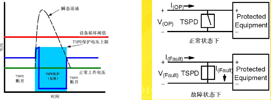 消弧保護器件:當一個激勵觸發時,通常是產生一個短路通道來實現保護目的。如晶閘管浪湧保護器件TSPD