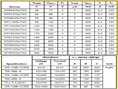 ONSEMI晶閘管浪湧保護器件(TSPD)主要參數